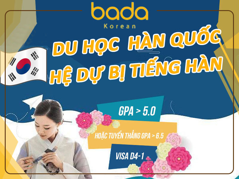 Không phải ai đi du học Hàn Quốc cũng đều biết tiếng Hàn. Chính vì thế, nếu vốn tiếng Hàn của bạn chưa đủ để theo học các hệ đào tạo cao hơn thì bạn sẽ cần theo học "đại học dự bị Hàn Quốc" khoảng 1 năm. Cho tới khi đạt chứng chỉ tiếng Hàn TOPIK 3 hoặc TOPIK 2 trở lên thì mới có thể đăng ký theo học các hệ đào tạo cao đẳng/đại học.
